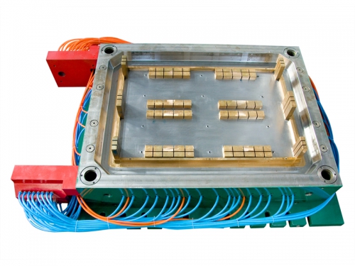 模具是指:為了將材料樹脂做成某種形狀,而用來承接射出注入樹脂的金屬制型。已溶解的材料是從澆口進入模具內再經由流道與流道口填充到模槽內。接下來則經 由冷卻工程與開模成型機脫模桿上的模具脫模板,推頂出成形品。